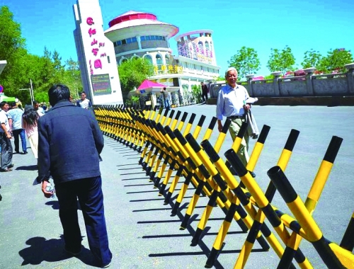 5月25日,新疆乌鲁木齐市红山公园入口处的游客通道,工作人员布置了防冲撞护栏进行隔离。据介绍,该市公园及BRT车站等公共场所已陆续安装安检门并加强安保措施。 |
