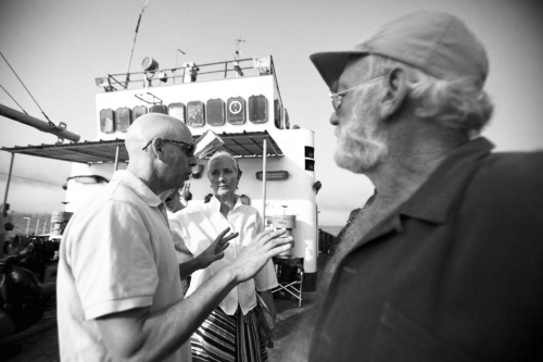 今年4月,导演鲍勃·雅里(左)与饰演海明威的阿德里安·斯帕克斯(右)在哈瓦那湾的一艘游艇上沟通。 |