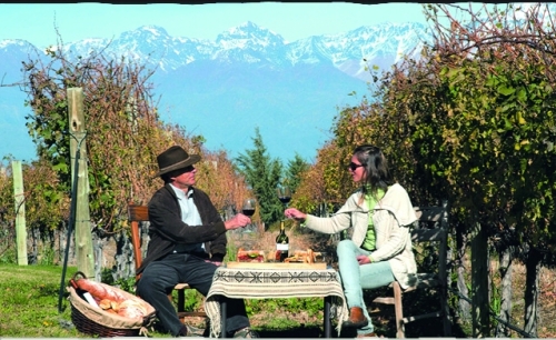 在我看来,面前的葡萄园简直是世界上最可爱的。若是半闭上眼睛去感受,你一定会觉得身处地中海之滨。然而,睁开双眼眺望远方的地平线时,你便会意识到此地与欧洲相隔万里——安第斯山像一堵高耸的墙挡在葡萄园后面,白雪覆盖的山顶在晴朗的天空下闪光。