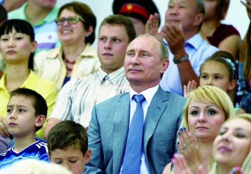 6月2日,俄罗斯索契,俄罗斯总统普京与儿童家长参加体育盛会。据法新社报道,普京发言人透露,在庆祝诺曼底登陆70周年的活动上,普京将不会与乌克兰新当选总统波罗申科会面。