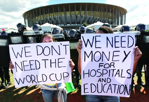 巴西政府主办世界杯的大手笔引来诸多非议,民众反对政府浪费公帑修建世界杯场馆。而巴西政府认为,主办世界杯将促进巴西经济的增长。