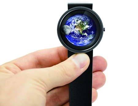 有人看看太阳或月亮的位置便知道当下的大致时刻,这款地月概念手表以月球为时针,通过内置GPS追踪佩戴者的位置,随时改变表盘的背景图案,即俯瞰地球的画面以及月球的阴影,以此告诉你现在的时刻,及从太空看过去你所处的方位。是不是视野瞬间开阔了许多?