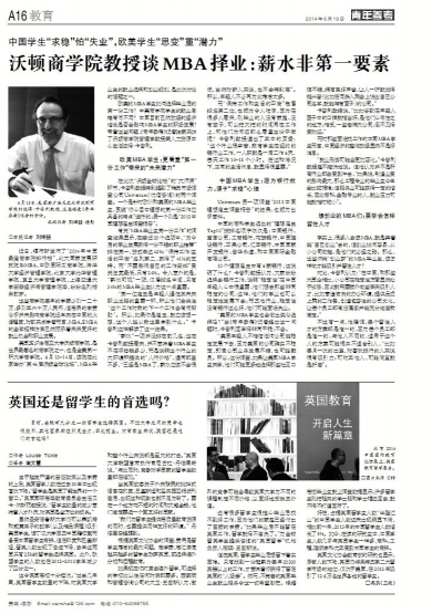 沃顿商学院教授谈MBA择业:薪水非第一要素