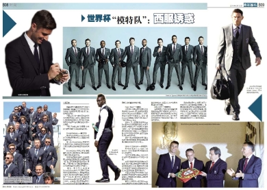 英格兰足球队以Marks and Spencer (M&S)西装为官方西装出征2014年世界杯。