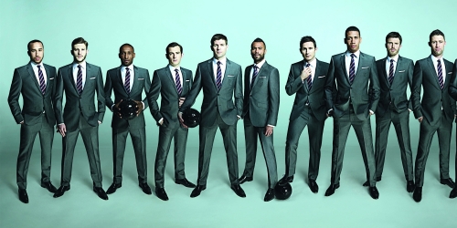 身材一流、长相英俊的球员们套上这身优雅的西服套装,瞬间变身超级男模,演绎出浓浓的时尚大片范儿。