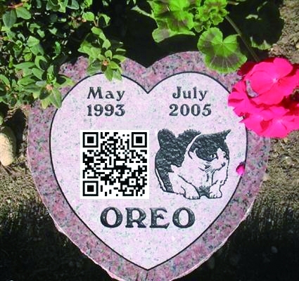 装饰在宠物墓碑上的二维码 |