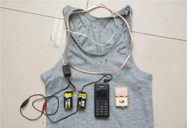 作弊背心 这件布满电线的背心,在一次国家级的考试中被发现。背心与摄像头相连,再利用手机将信号发出。 |