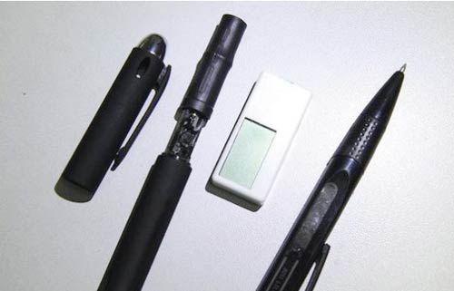 作弊耳机、作弊笔 在四川,有40名学生被发现使用高科技耳机和签字笔作弊。签字笔会把试题拍下并发送出去,而后,答案会通过耳机传送进来。 |