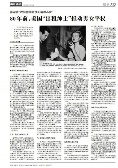 20世纪30年代,旨在为单身女性提供“护花使者”的“出租绅士”服务,在美国迅速走红。其开创者特德·佩卡姆屡遭挫折,仍被誉为推动男女平权的先锋。