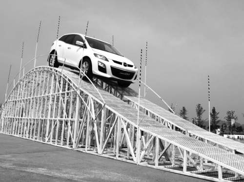 一汽马自达工作人员介绍,CX-7之所以号称“SUV操控王”,主要是因为其借鉴了马自达著名跑车RX-8的整体风格,车身线条更符合空气动力学要求,前挡风玻璃的倾斜角度达到65.5度,造型更接近跑车,较其它SUV车型具有远为流线、奔放的车身轮廓。这种设计让CX-7实现了0.34的低风阻系数,能够有效提高操控性能并降低油耗。反应到主观体验上,虽然CX-7离地间隙达208mm,通过性良好,整车重心却给人感觉非常低。在重庆铁坪山森林公园蜿蜒的山路上,其出色的弯道表现除了与后文将提到的技术配置有关,也归因于此。内饰方面,CX-7的大空间也会让驾乘者感到放松与愉悦。