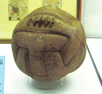 世界杯用的第一颗足球是皮革制作的,你可能会觉得,“这么笨重!这么难看!这都行?” |