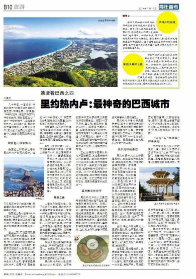 几十年前,一首名为“神奇的城市”的桑巴进行曲就风靡巴西、传唱世界。它唱道:“神奇的城市,洋溢风情万种;神奇的城市,我的巴西之心!”这个“神奇的城市”,正是里约热内卢。2012年7月,里约的城市景观被列入世界文化遗产,因此成为世界文化遗产中首个入选自然景观类别的城市。