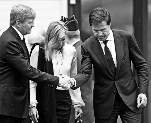 7月21日,荷兰乌特勒支,荷兰国王亚历山大(左)、马克西玛王后(中)和首相马克·吕特(右)会晤马航MH17客机坠毁部分遇难者家属。事故导致193名荷兰民众死亡。 |