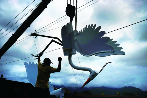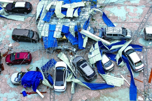 7月19日,“威马逊”横扫广东湛江后,徐闻县税务局旁一家汽车销售店车场内一片狼藉,损失近千万。 |