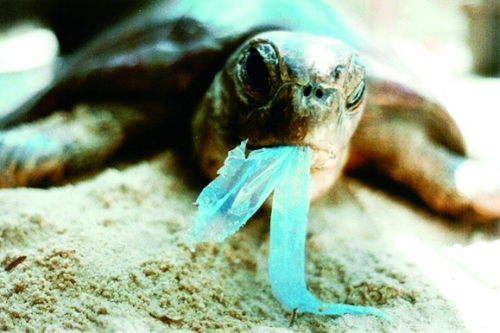 “鱼类不得不在碎片垃圾间穿梭游荡。”全球海洋委员会的一员、牛津大学生态学家亚历克斯·罗杰斯说,“在死去的海鸟胃里,我们发现了大量碎片。海龟吞食塑料袋,因为看上去像它们最喜欢的食物——水母。由于塑料不易消化,最终会堵塞肠胃导致海龟死亡。”