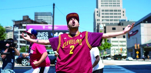 骑士队的球迷为詹姆斯的回归激动不已 |