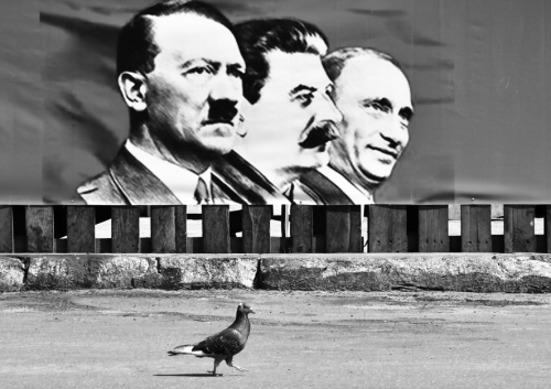 当地时间7月28日,乌克兰基辅街头的俄罗斯总统普京海报遭恶搞。图片来源 CFP |