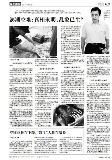 7月23日晚7时许,台湾复兴航空客机GE222迫降澎湖马公机场失败,导致机上乘客和机组成员48死10伤。一时间,对空难的报道和对事故的问责充斥着台湾媒体。