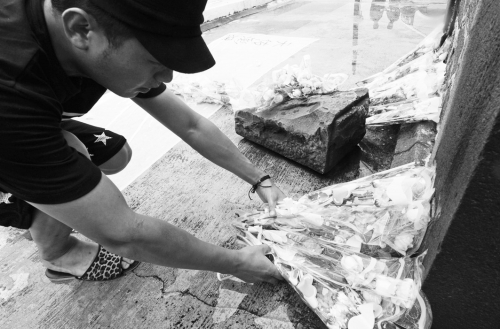 7月25日,当地民众献花悼念亡者。 |