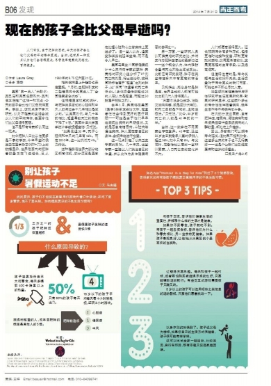 美国“第一夫人”米歇尔·奥巴马和英国名厨杰米·奥利佛正在推广这样一种观点:今天的孩子会比他们父母死得更早。事实上,该观点源于学术研究,认为不健康的生活会减少人们的平均寿命,甚至令他们比父母活得更短。