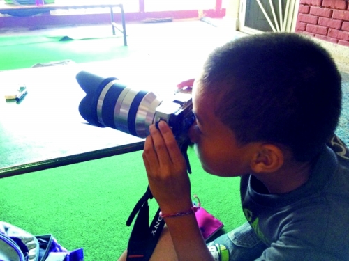 给孩子们拍照时,9岁的Nisan非常渴望玩一玩我的相机,我毫不犹豫地递给了他,他拿着相机,捣腾了半天,终于用镜头对着我按下了快门。
