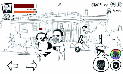 这不,在恶搞格斗类游戏《奥巴马VS普京》中,“两人”就展开了一场殊死对决。玩家可任选两名首脑之一进行游戏,谁先击败对方即获胜。除了普通攻击外,开发者还为“奥巴马”和“普京”配备了特殊攻击和必杀技。