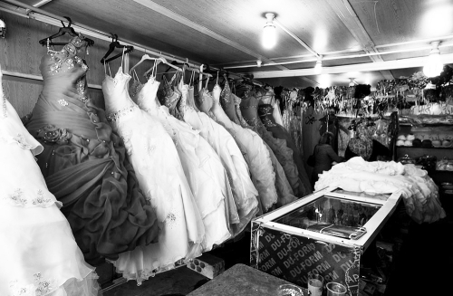 对于婚姻大事,即使身处乱世,难民们也不愿马虎,营区里的婚纱店满足了难民们的这一需求。