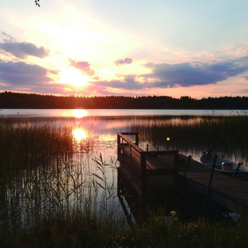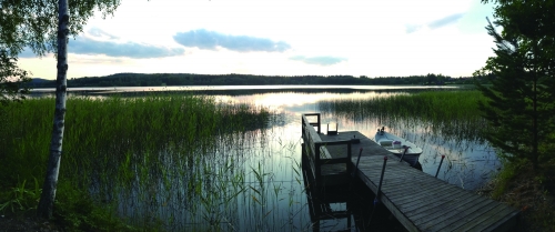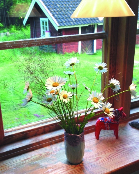 朋友家的夏屋是他祖父母在上世纪80年代初购买的,位于距斯德哥尔摩200多公里外的一个小村庄。拥有瑞典特色外墙漆的红房子坐落在村庄角落里,伫立在一条半公里长蜿蜒小路的尽头,路边繁茂地生长着以白色雏菊为代表的各种野花;背后就是山和森林,由于人迹罕至,森林的地表除了一些绿植,还覆盖着厚厚的松针,踩上去软绵绵的;面前则是一湾大湖,能看到对岸绿地上吃草的马儿和山间散落的住户,安静时,甚至能听到大鱼跃出水面的声音。