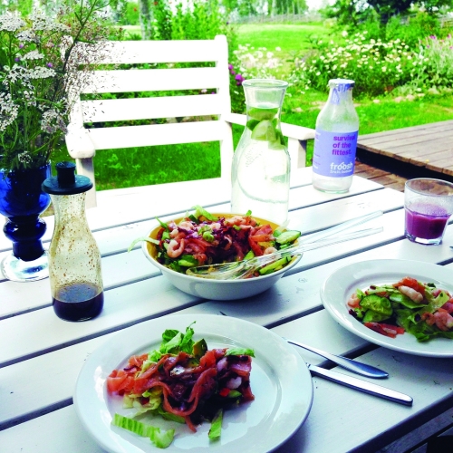 瑞典的夏日白天长,常常夜里11点多才天黑。度假期间,我把更多的时光用来放空自己:躺在屋外平台上,边晒日光浴边注视着白云慢悠悠地飘过,或是坐在湖边的秋千上,喝着红酒望着夕阳,再或者去山林中摘野草莓、野蘑菇和蓝莓,到路边采各种各样的野花,温度高一点儿便跳进湖里游泳,就连坐在沙发上,也能看着远山和湖水发呆。