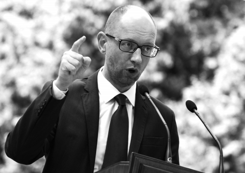 8月8日,乌克兰总理亚采纽克召开新闻发布会,宣布政府批准了对俄制裁的法律草案。图片来源 CFP |