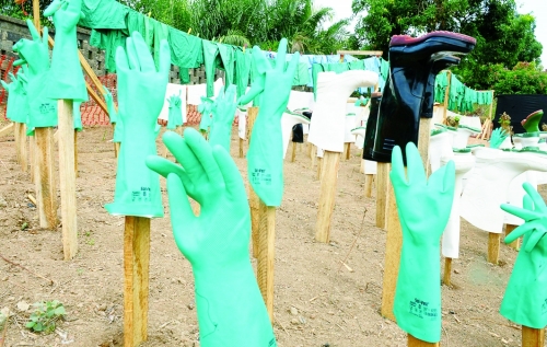 当地时间8月19日,几内亚给凯杜,埃博拉受害者中心医务人员使用的手套。 世界卫生组织19日称,埃博拉病毒已在全球范围内造成1229人死亡,仅在3天内就造成84人死亡。世卫组织称,在3天内,受感染的病例增加113例,使得总数达到2240人。利比里亚是疫情蔓延最快的国家,新近增加48个感染病例、53例死亡病例,从而使得该国的受感染病例达到834人,其中466人死亡。 |