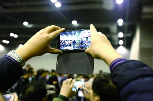 今年年初,数万名考生在香港亚洲国际博览馆考场参加SAT考试,考生家长用手机拍下孩子参加考试的瞬间。 |