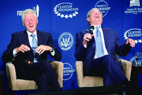 当地时间9月8日,美国华盛顿,美国前总统克林顿和小布什共同出席美国总统学者奖活动,谈笑风生,露出罕见大笑表情。 美国总统学者奖项目起始于1964年,是根据当时的林登·约翰逊总统的行政命令而设立的,用以选拔和表扬美国最杰出的应届高中毕业生。每年,有最多可达141人的全美优秀高中毕业生(每州一个男生和一个女生)获得该奖,这是高中生所能获得的最高荣誉之一。 总统学者奖获得者将获邀免费参加在首都华盛顿举行的国家荣誉周活动。他们与政府官员、教育专家、作者、学者会面,参观首都的博物馆、纪念馆,并在由白宫主办的颁奖仪式上接受总统学者奖奖章。 |
