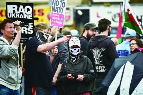 2014年9月4日,英国威尔士,示威者抗议北约峰会举行。 |