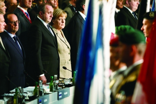 2014年9月4日,英国威尔士,德国总理默克尔(右)和法国总统弗朗索瓦·奥朗德(左)参加北约峰会。 |