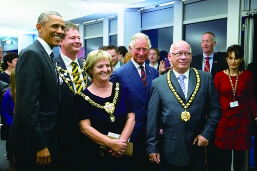 2014年9月4日,英国威尔士纽波特,威尔士亲王查尔斯(左4)在凯尔特庄园招待出席北约峰会的各国领导人。 |