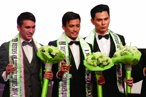 当地时间9月7日,菲律宾马卡迪,马尼拉警官尼尔·佩雷斯(中)获得菲律宾先生选美大赛冠军。佩雷斯将代表菲律宾参加2014年10月在韩国首尔举办的国际先生选美大赛。