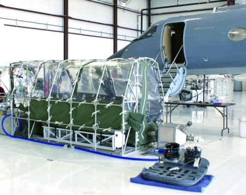 “灰鸟”搭载了医学生物防护系统(ABCS),这是用透明厚塑料搭建的帐篷,为防止感染,内部由高效空气净化器过滤空气。这套系统建于2003年,原本为SARS爆发期间运送病人而准备,但当时并未用到。此次运送埃博拉病毒感染者,是它第一个真正意义上的考验。
