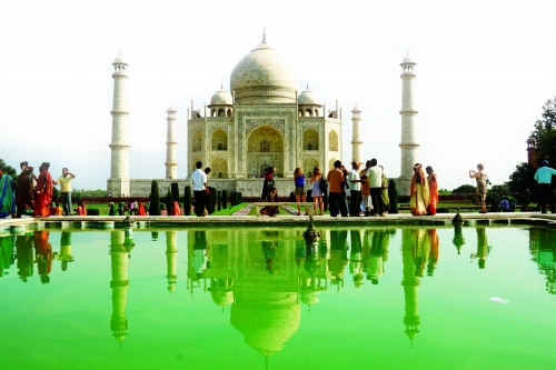 抵达泰姬陵那天,风和日丽。正如泰戈尔所说,泰姬陵如同永恒面颊上的一颗眼泪,在一束束阳光下渐变着色彩,无比梦幻。我举起相机,一次次按下快门,总担心拍不够。恰在此时,一个穿着白色长裙,长发披肩的中国女孩闯进了镜头。多么美丽的画面!恍惚间,我想起了泰姬陵的主人阿姬曼·芭奴,她的丈夫、莫卧儿王朝第五代皇帝沙贾汗修建了这座陵墓。那个万般传奇的女子用这栋美丽的建筑述说着堪称千古绝唱的爱情故事,而眼前这位白衣女孩,却于几百年后,在举手投足间与白色的泰姬陵完成了美丽的邂逅。
