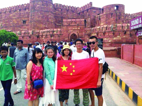 在阿格拉红堡与年轻人合影 |