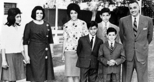 1960年,埃及总统纳赛尔和他的家人。女性都不戴头巾,可以穿短裙。 |