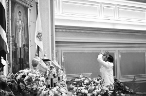 9月9日,巴育向泰王的画像行大礼。 |