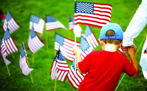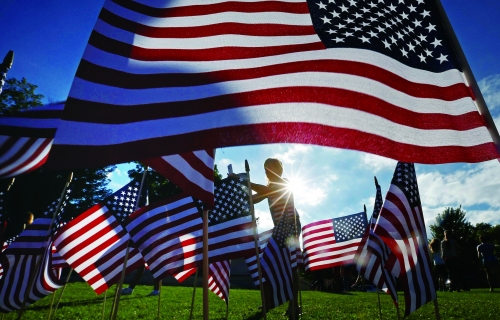 2014年9月10日,美国伊利诺斯州,民众竖起3000面美国国旗,纪念9·11事件中的约3000名受害者。 |