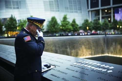 2014年9月11日,美国纽约,前警长山姆·普里拉在9·11遗址广场的“沉思池”前哀悼自己的表妹。 |