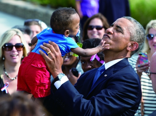 2014年9月11日,美国华盛顿,美国总统奥巴马在五角大楼参加9·11恐怖袭击13周年的纪念活动,并抱起一名13个月大的幼儿。幼儿的祖父Angelene C. Carter在9·11恐怖袭击中丧生。 |