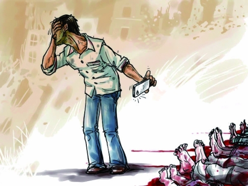 悲痛地拍照并离开