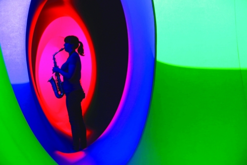 当地时间9月13日,色彩音乐节在英国伦敦举行,音乐演奏家萨莉·麦克塔加特在雕塑“一个节日”里演奏萨克斯。这一音乐节已有25年的历史。本届音乐节将持续到9月21日。 |
