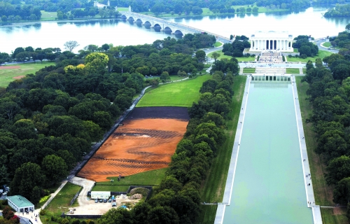 当地时间10月1日,美国华盛顿国家广场,古巴裔美国艺术家豪尔赫·罗德里格斯-赫拉达绘制了占地约2.43公顷的巨幅肖像。这一肖像使用了约2000吨沙子、800吨土和10000个木栓。