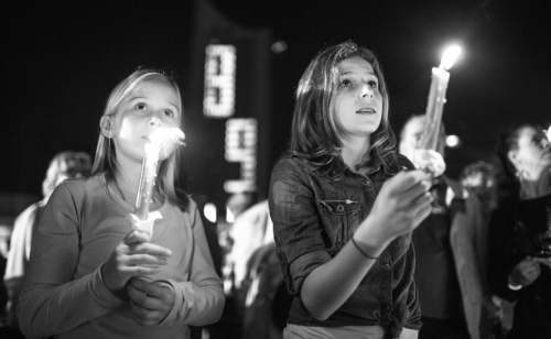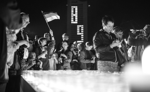 10月9日,德国莱比锡奥古斯特广场点燃蜡烛,纪念柏林墙倒塌25周年。美国前国务卿基辛格、德国前外长汉斯、德国总统高克和美国大使约翰·爱默生出席了仪式。图片来源 CFP