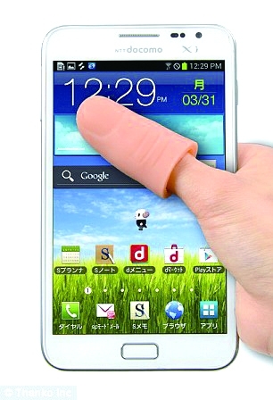 iPhone越变越大,尤其是最新的6代Plus,实在让手小的妹子难以驾驭。现在不用为难啦,日本推出了一款iPhone专用指套,看上去异常逼真,接在自己的大拇指上,配合指尖上的触点,就能单手完成各种操作了。售价约合84.5元人民币。